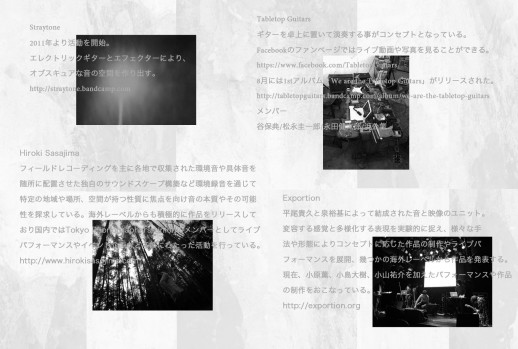 現在、メンバーに小原薫、小島大樹、小山祐介を加えパフォーマンスや音響作品、映像作品の制作をおこなっている。